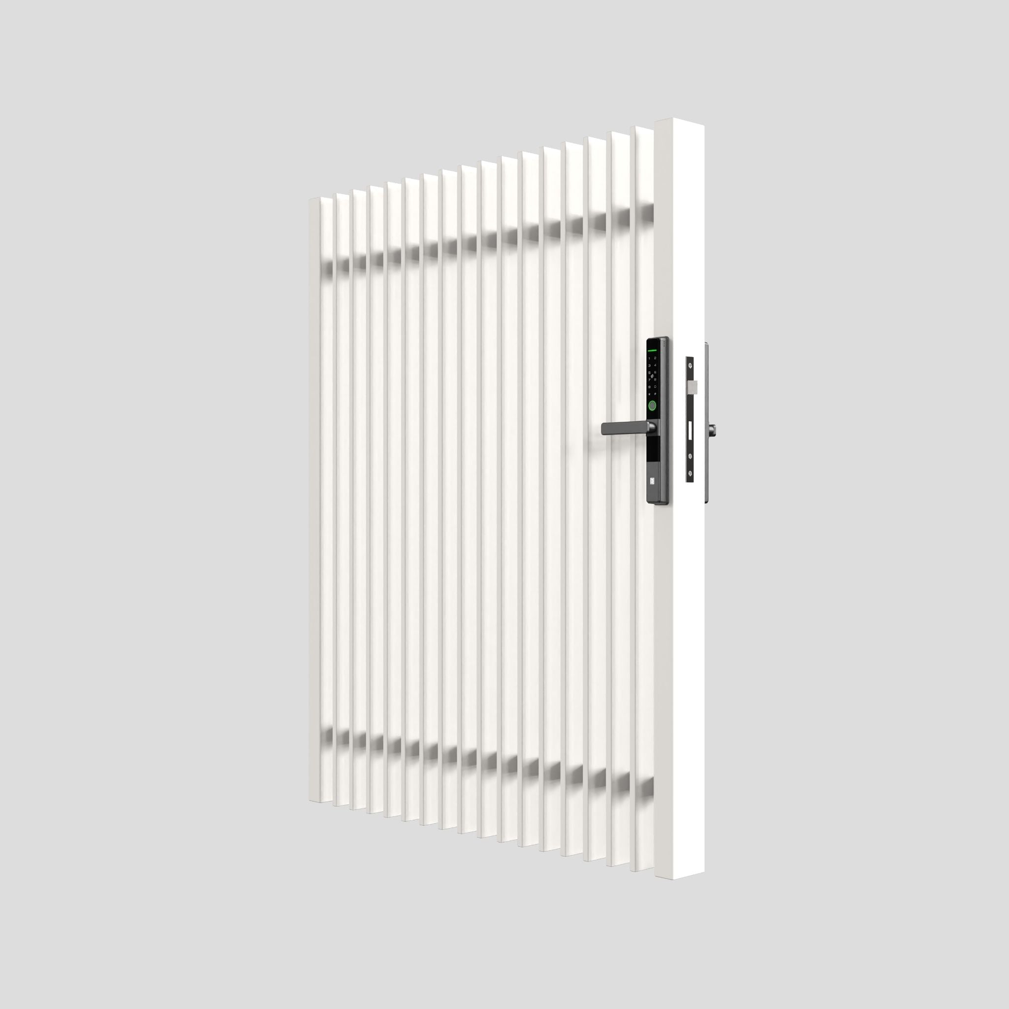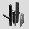 Note: Gate Frames are pre-drilled for our standard 'Handle & Mortice Lock'. Installation of the Forged Electric Handle requires enlarging existing holes and drilling a few new holes to suit this handle.