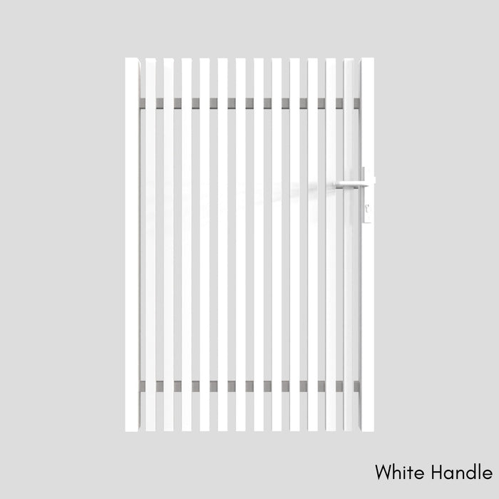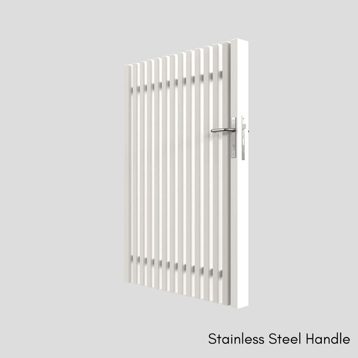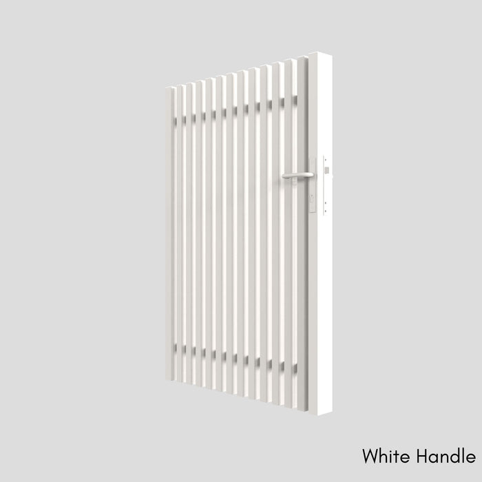 Aluminium Batten Gate 1m Wide - Natural White with Handle (Right Hand Side)
