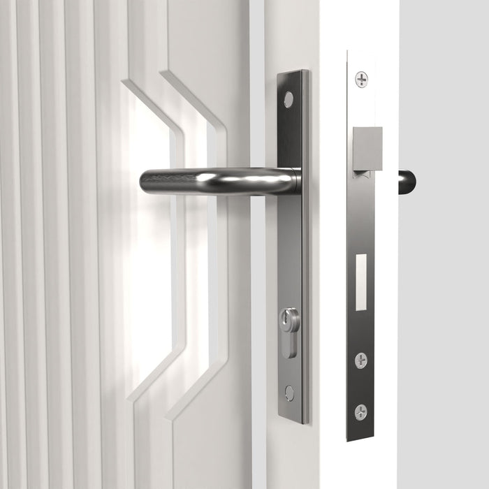 - If 'Mortice Lock (locking handle)' option selected: You will be sent a full handle, mortice lock, key and striker plate set. The gate is pre-routed but the hardware will need to be assembled into the gate on installation. The striker plate can be used as a guide to drill out holes in the post for the latch and lock. Posts and hinges are sold separately.