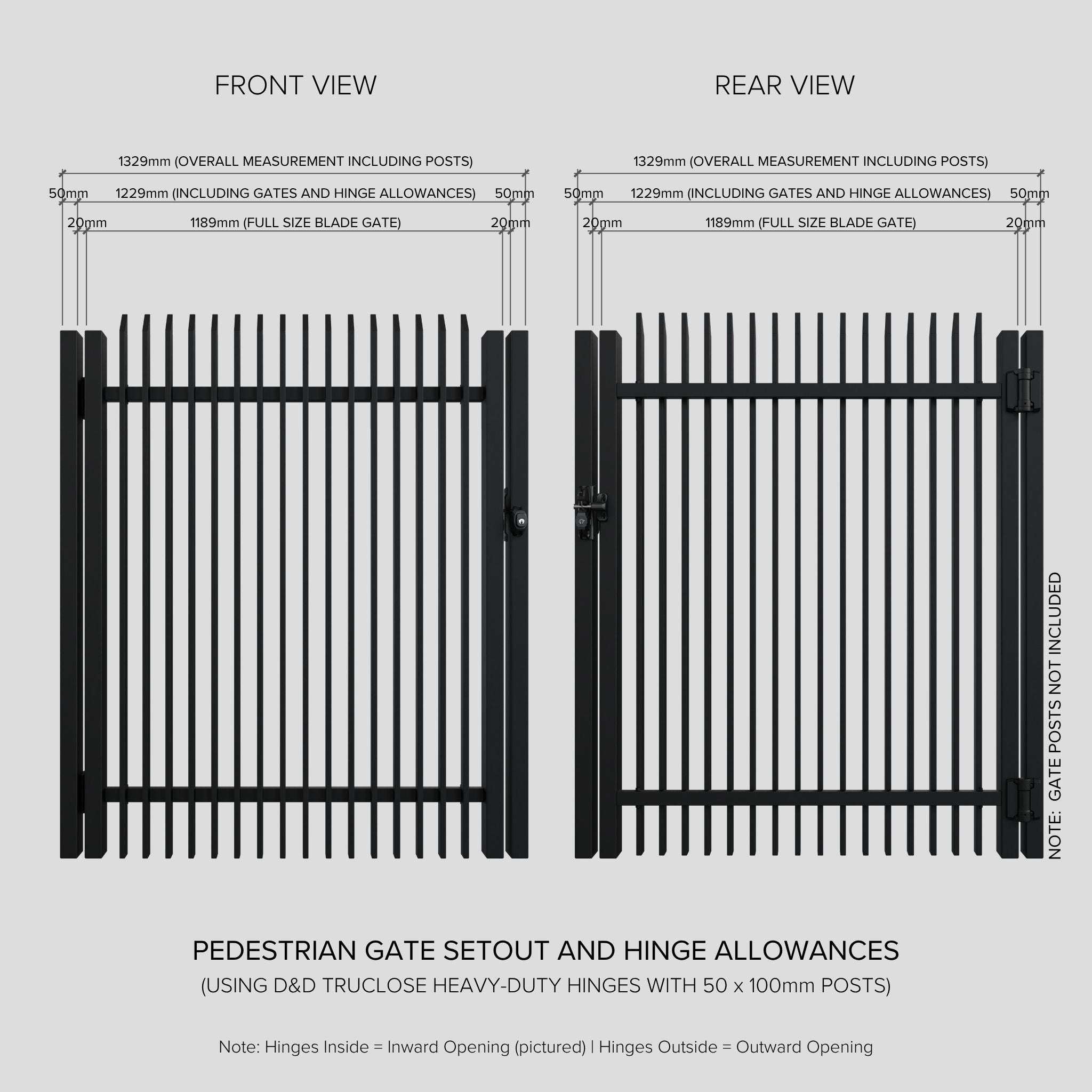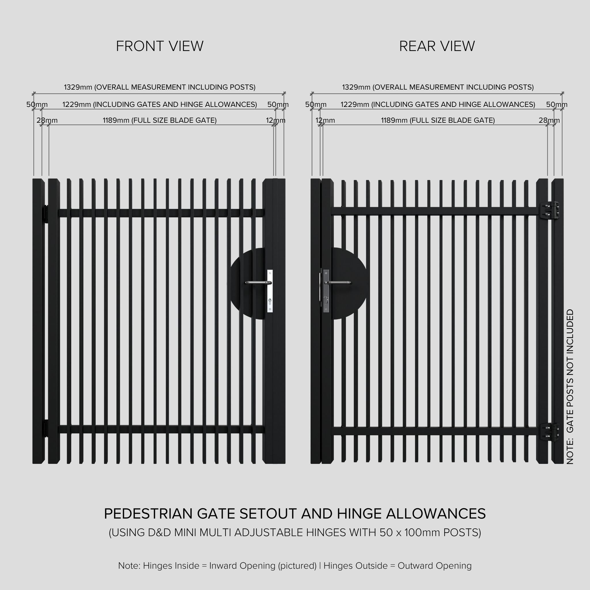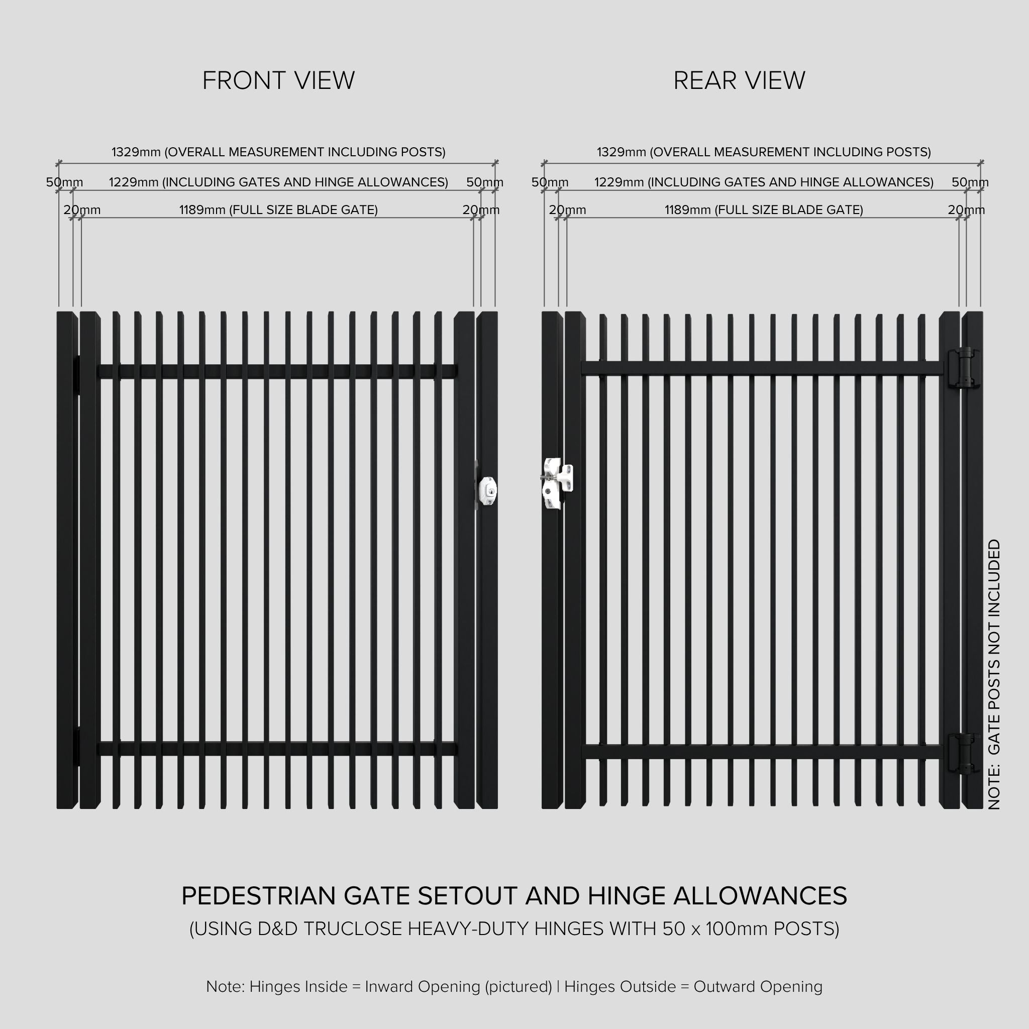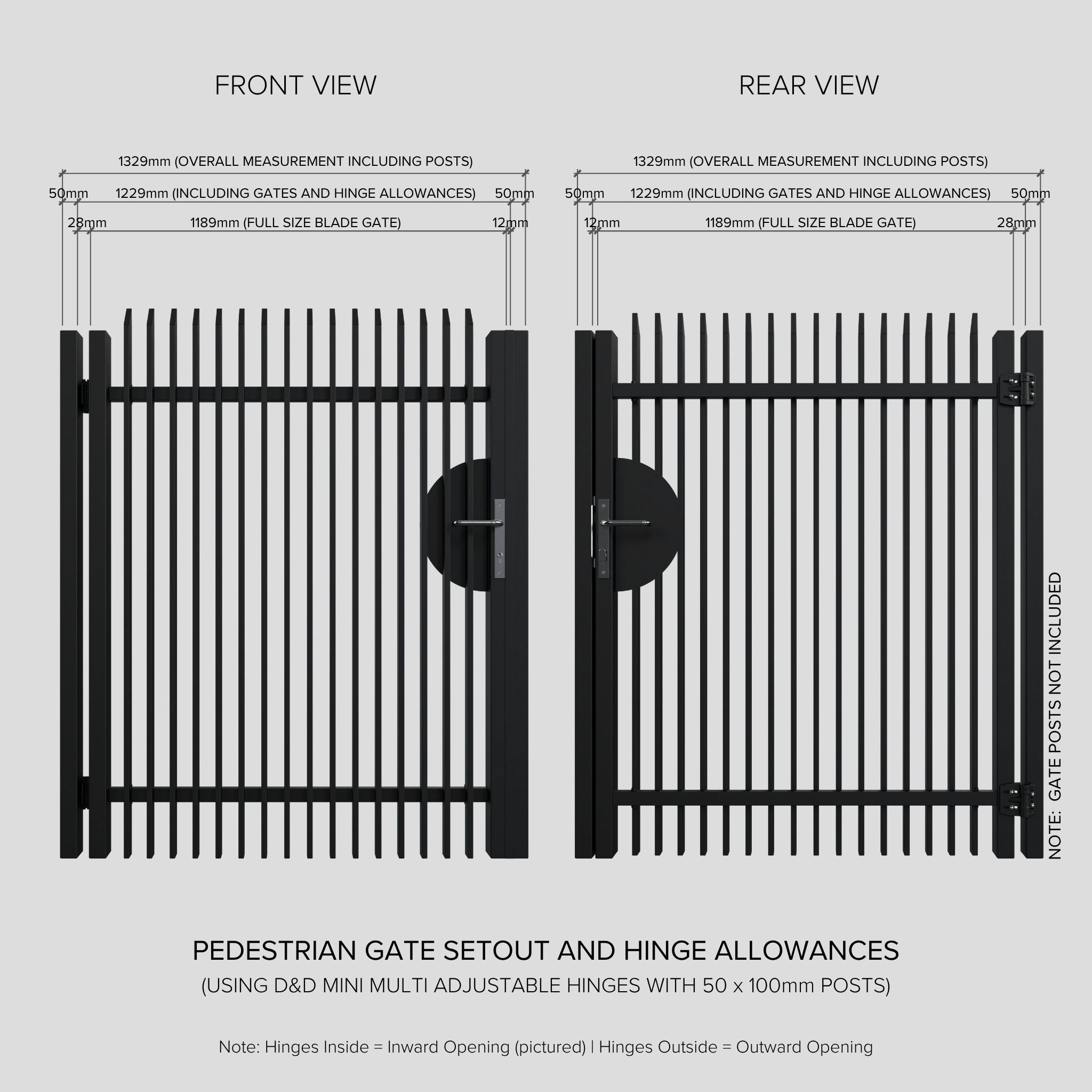 - We supply a Gate Panel to make a gate up to 1189mm wide (excluding posts). Panel can be cut to size on site. Review hinge and latch setout