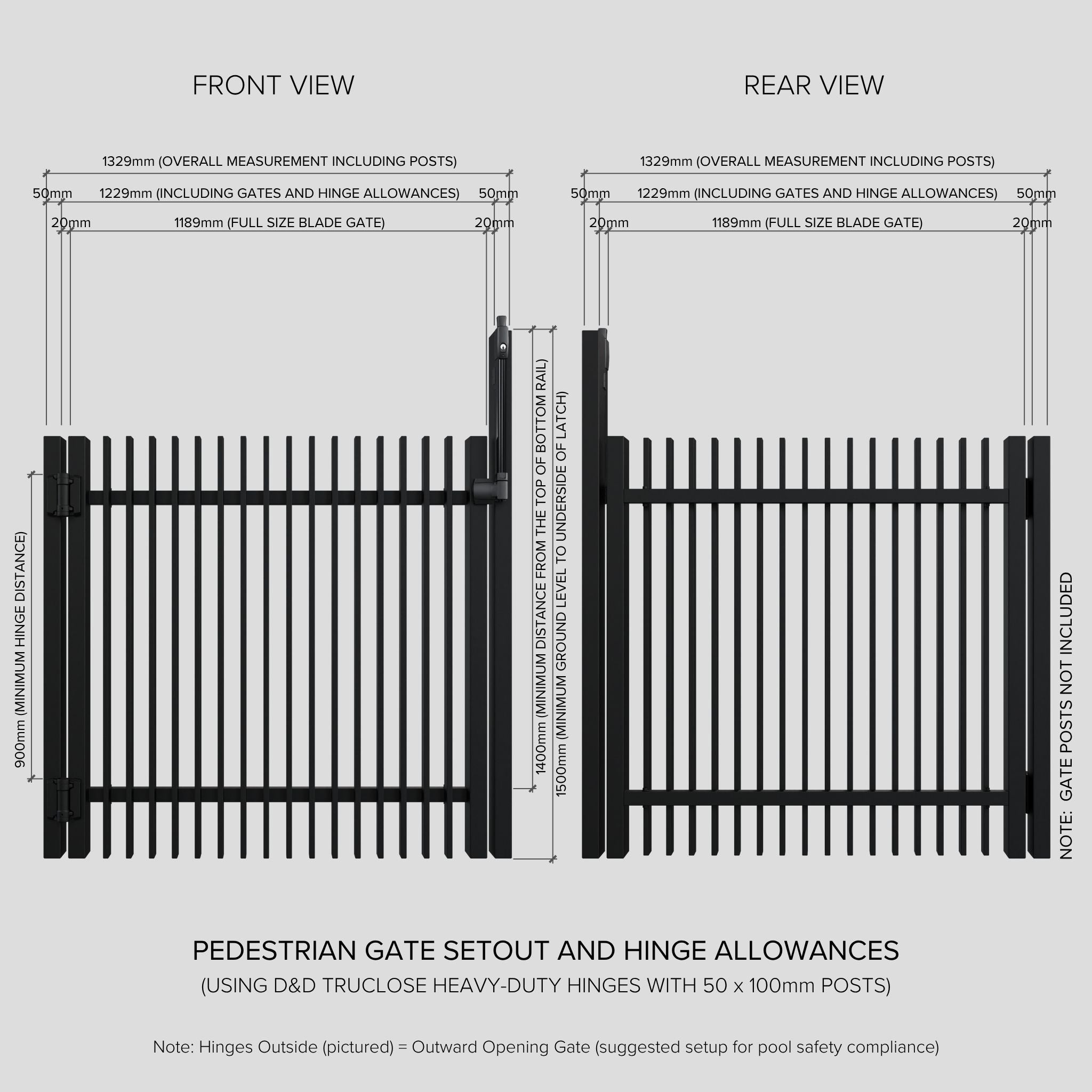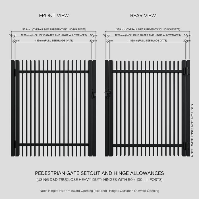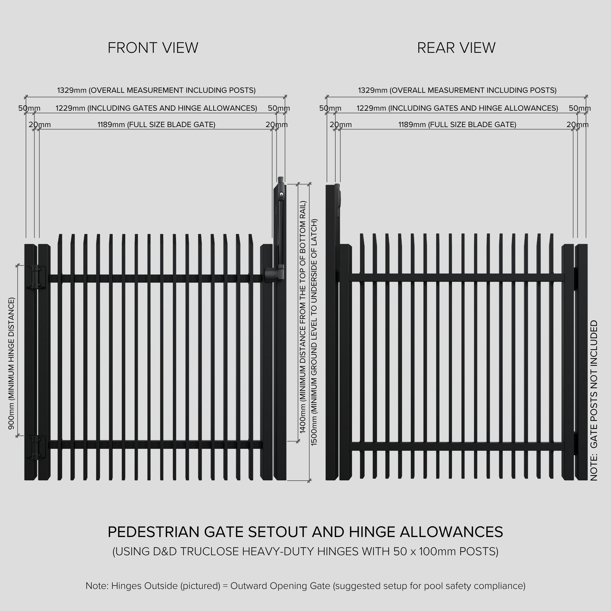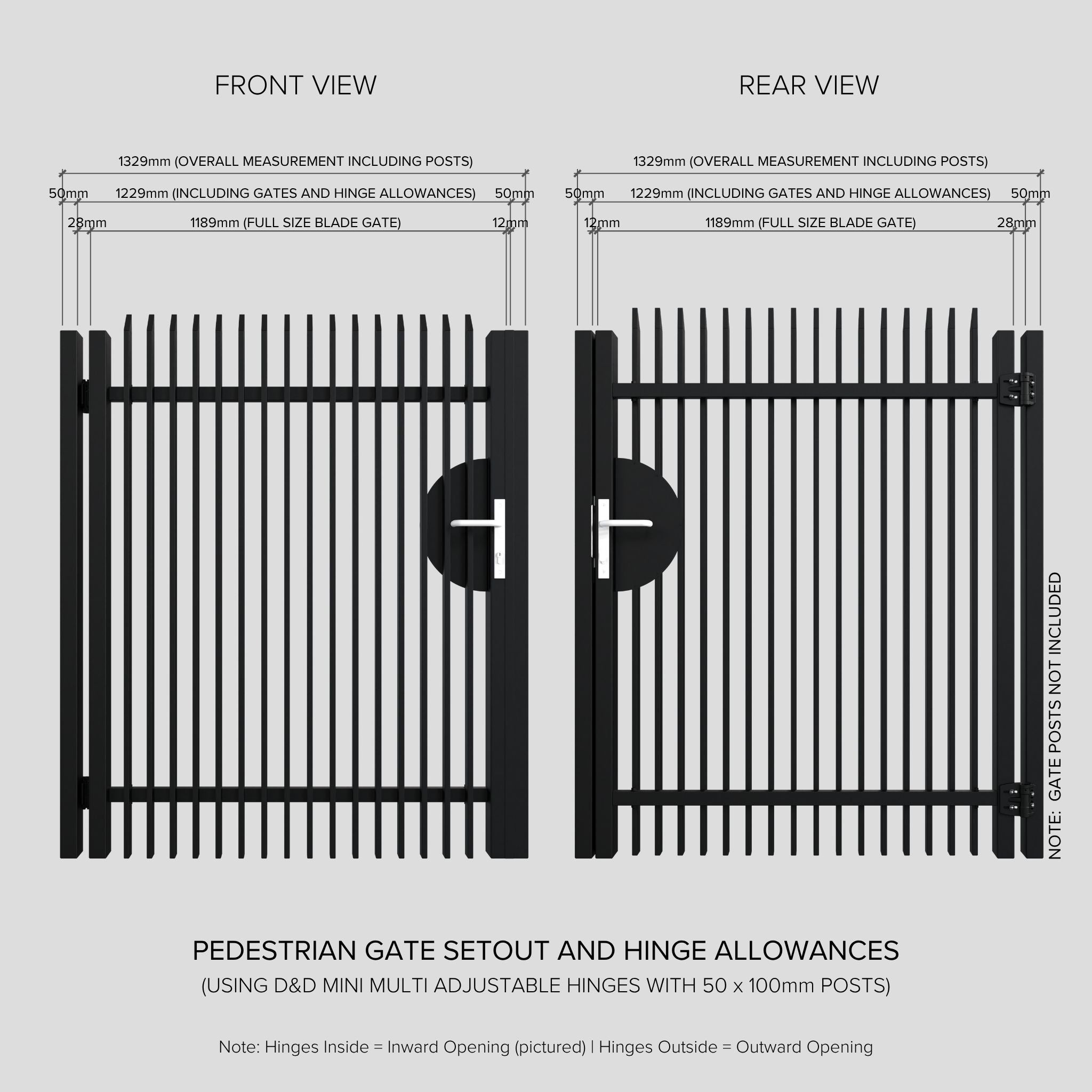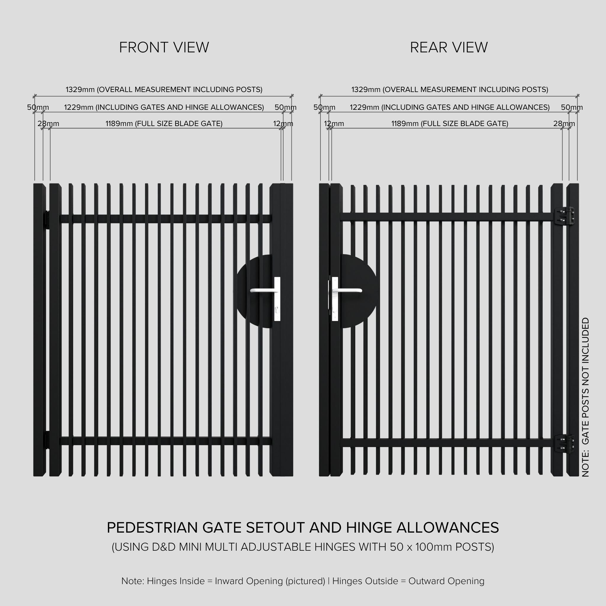 - We supply a Gate Panel to make a gate up to 1189mm wide (excluding posts). Panel can be cut to size on site. Review hinge and latch setout