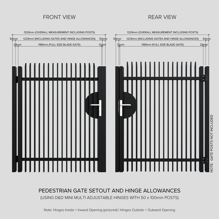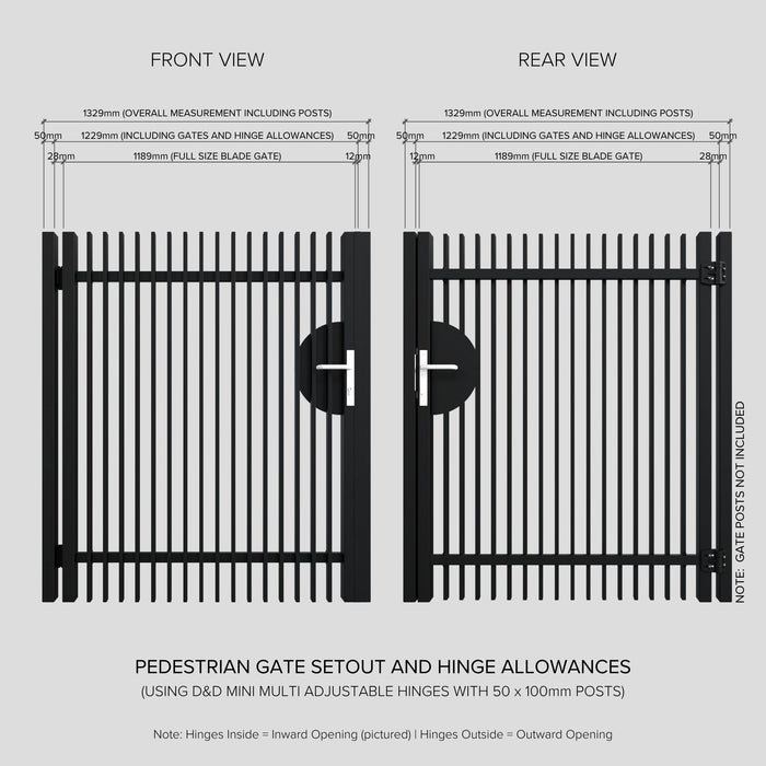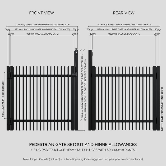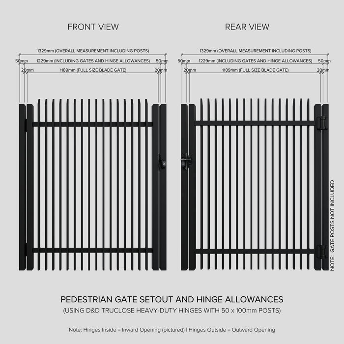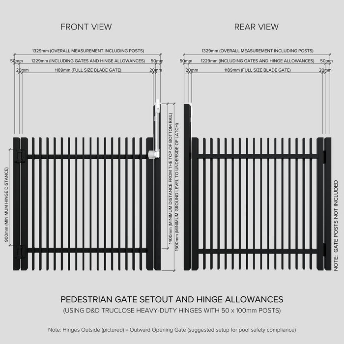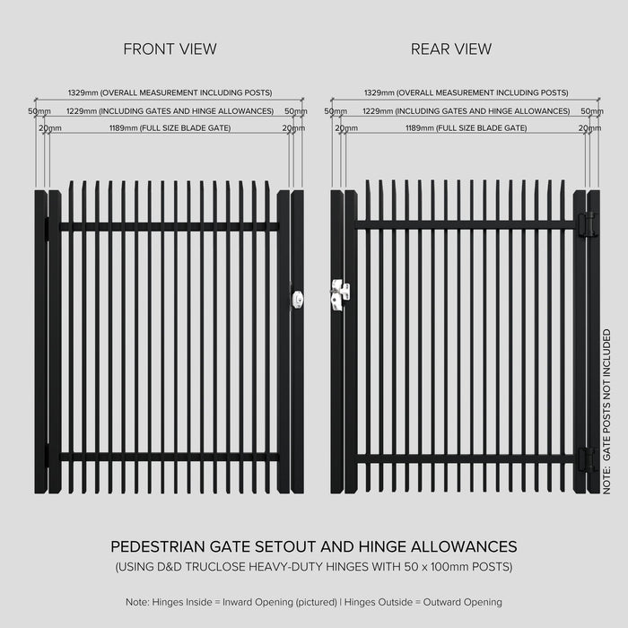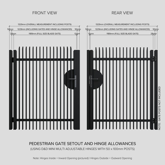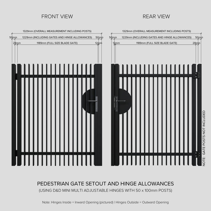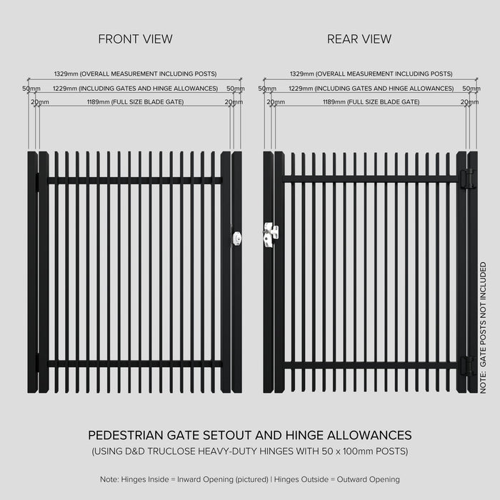 - We supply a Gate Panel to make a gate up to 1189mm wide (excluding posts). Panel can be cut to size on site. Review hinge and latch setout