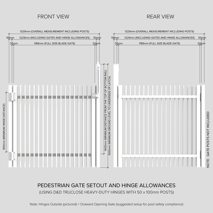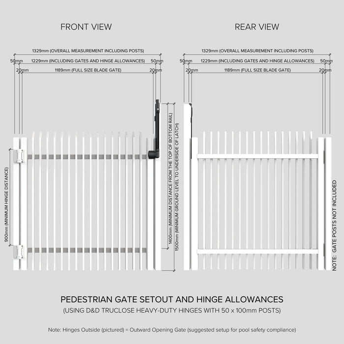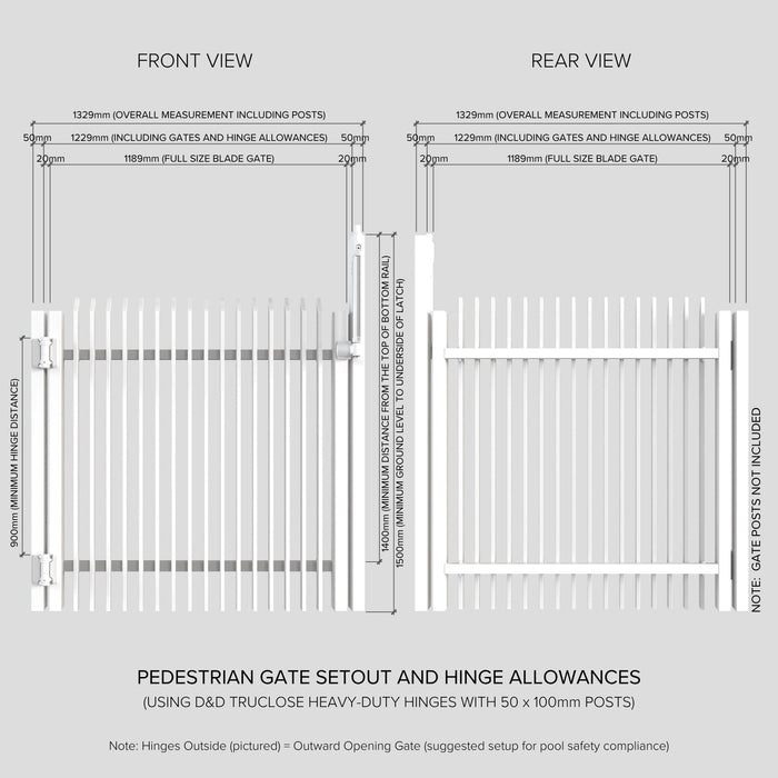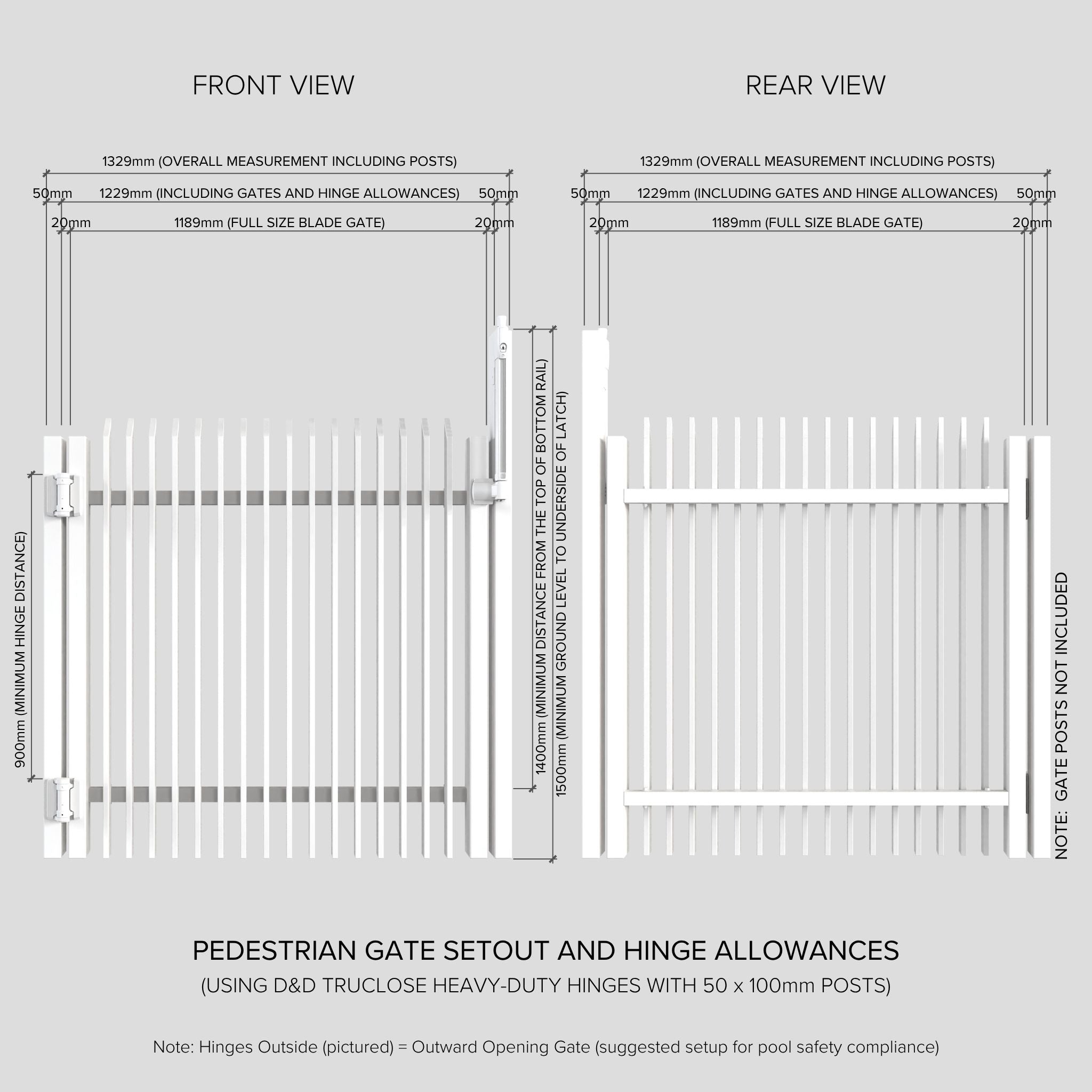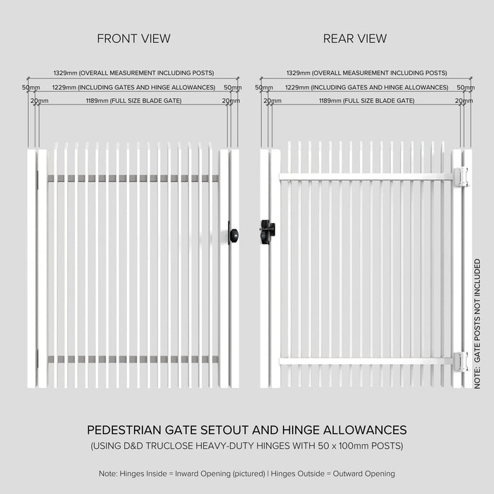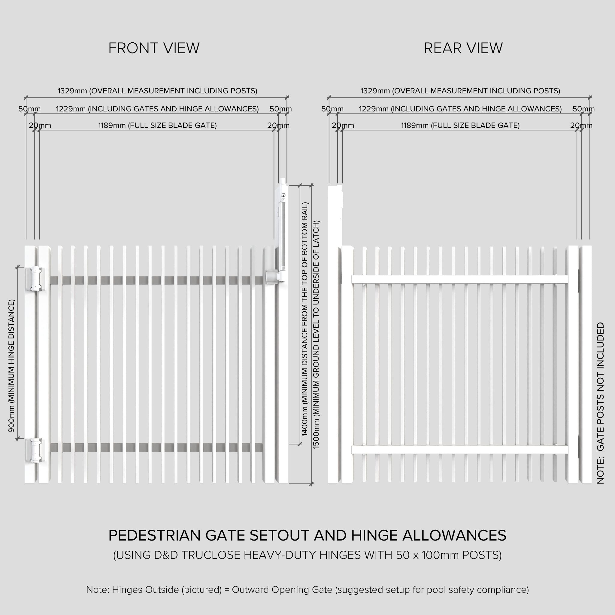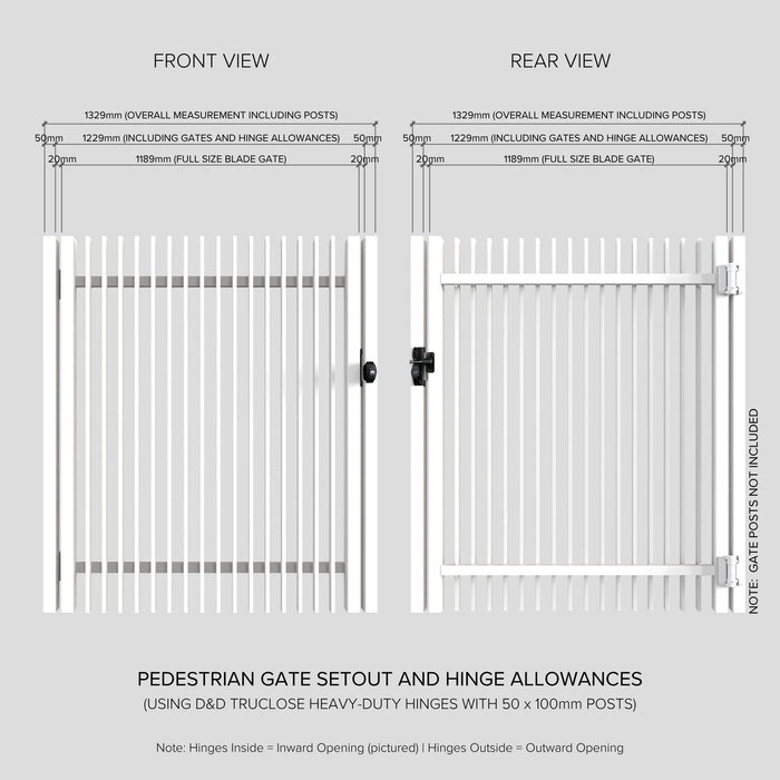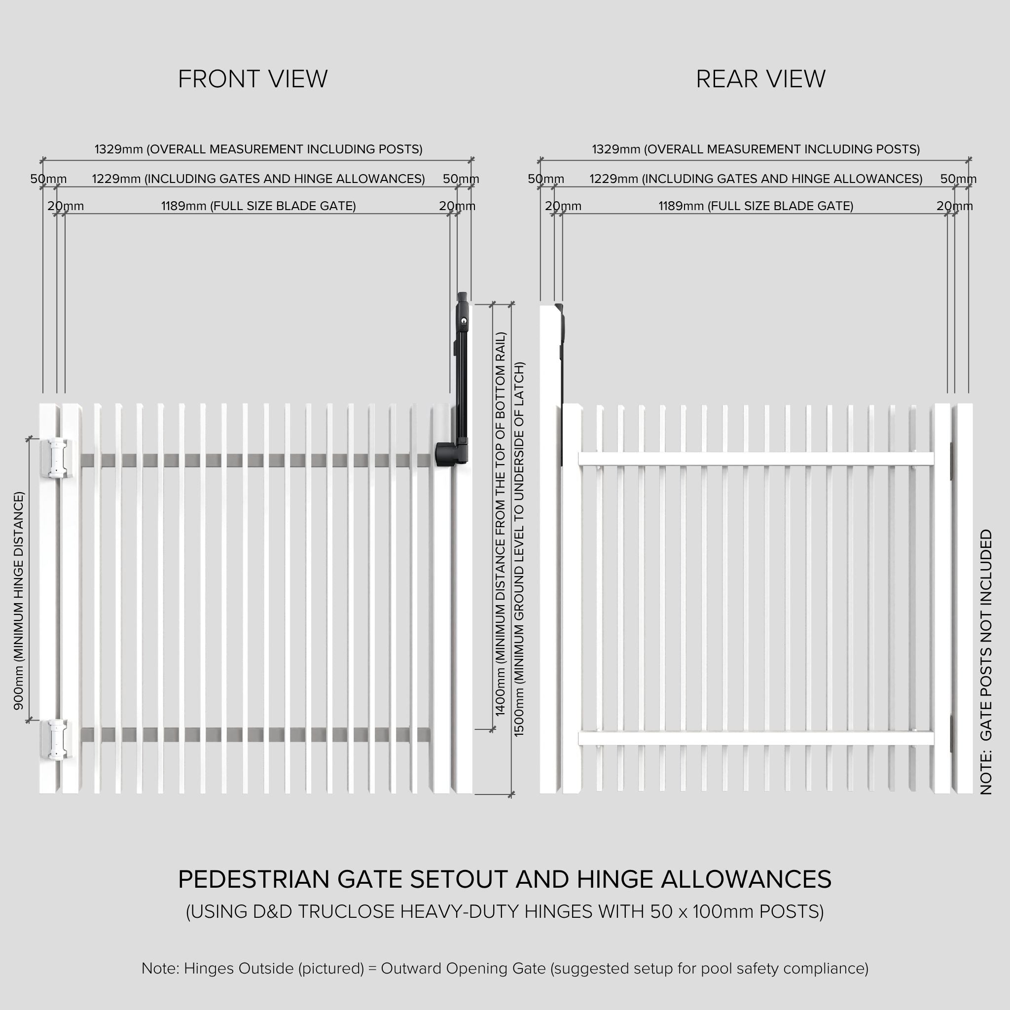 Build your own Blade Gate with adjustable widths up to 1189mm or 1500mm and four height options. Trim the panel to size on site before assembling into the 50 x 100 Gate Frames. Posts sold separately - pair with 50 x 100 or 100 x 100 posts.